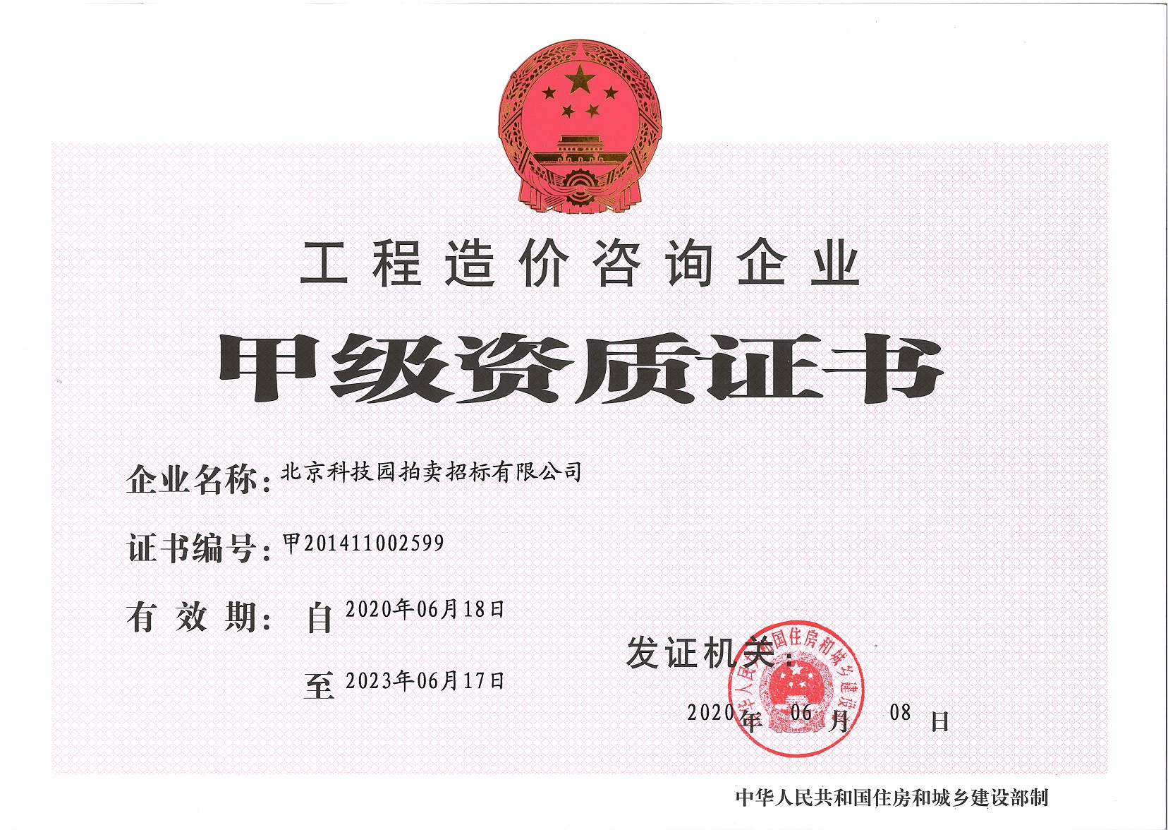工程造價(jià)咨詢企業(yè)甲級資質(zhì)證書