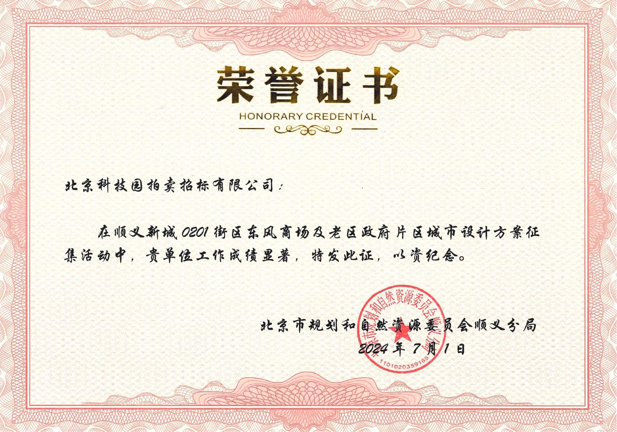 • 順義新城 0201街區(qū)東風(fēng)商場及老區(qū)政府片區(qū)城市設(shè)計方案征集榮譽證書