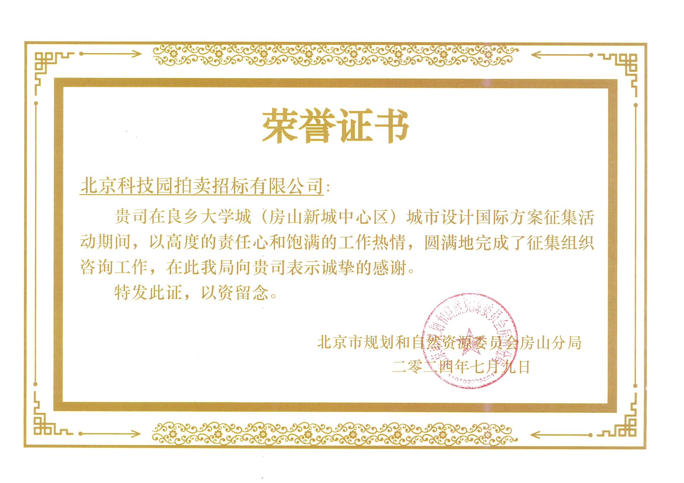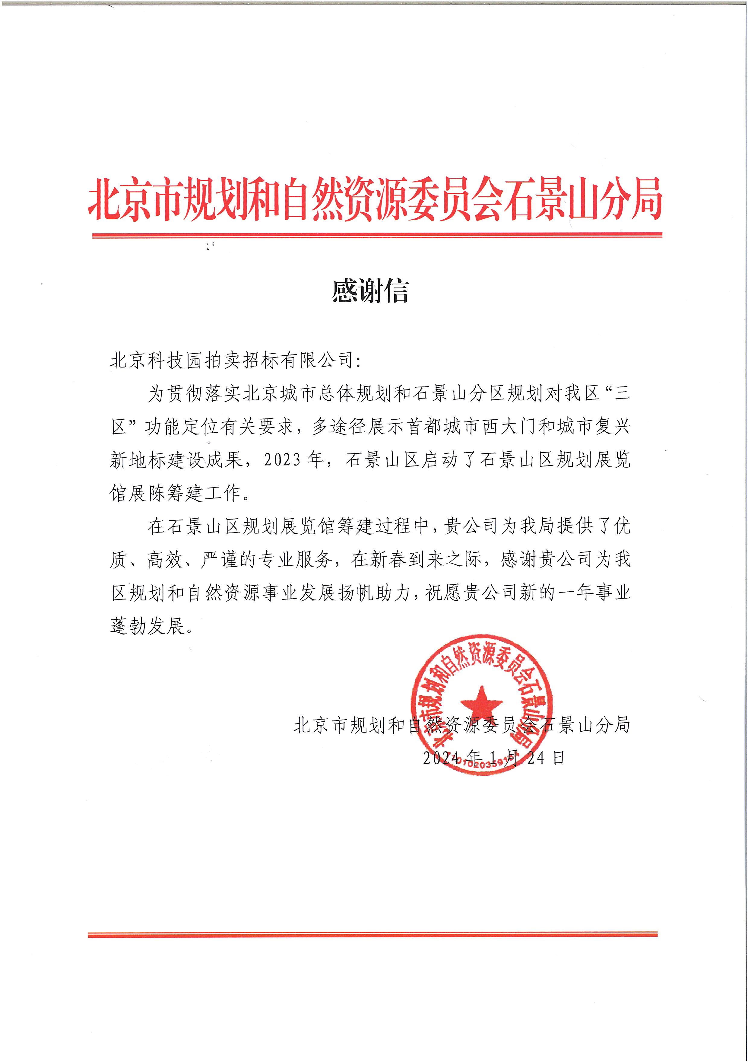 • 北京市規(guī)劃和自然資源委員會石景山分局感謝信