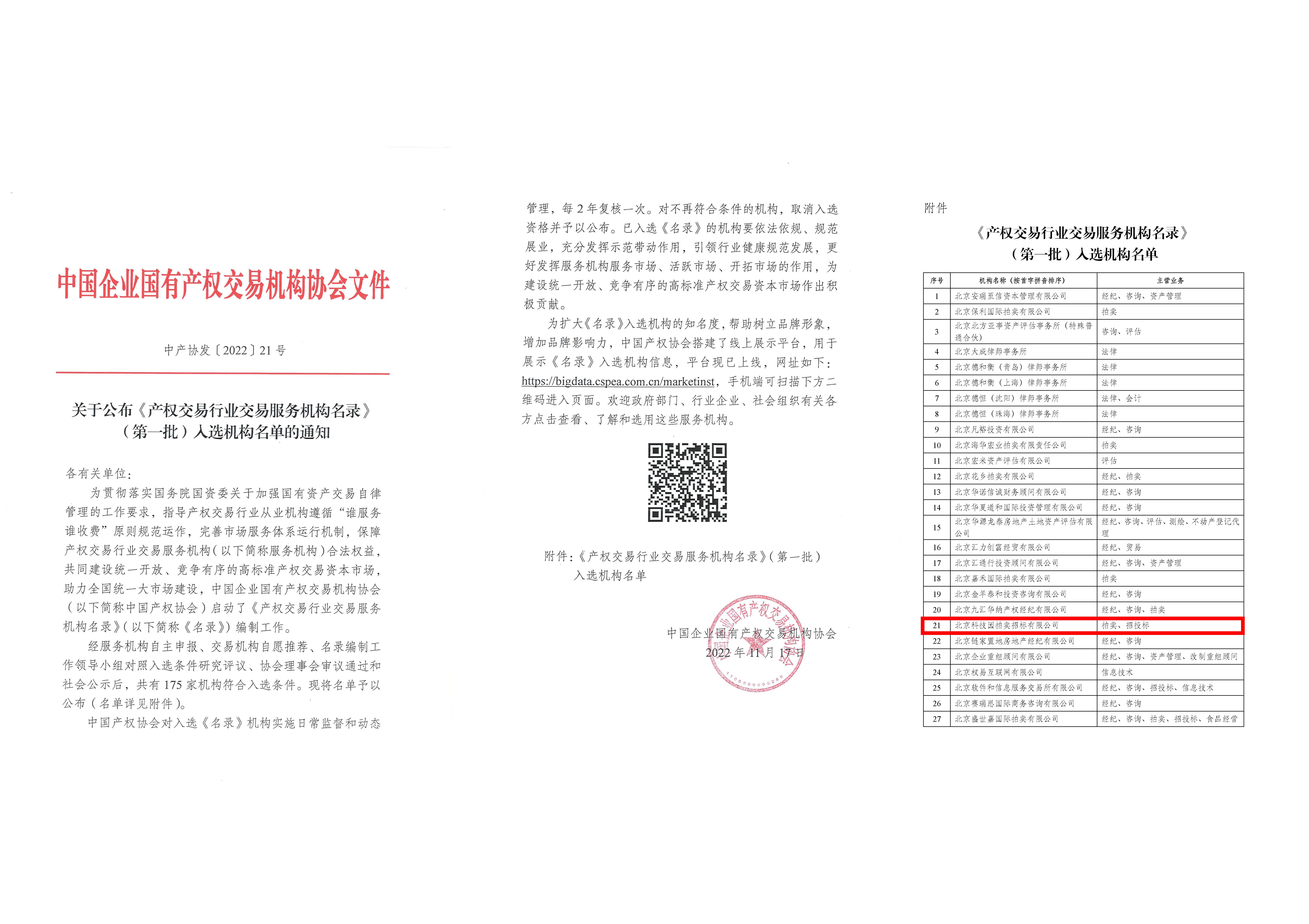 產權交易行業(yè)交易服務機構名錄》(第一批)入選機構