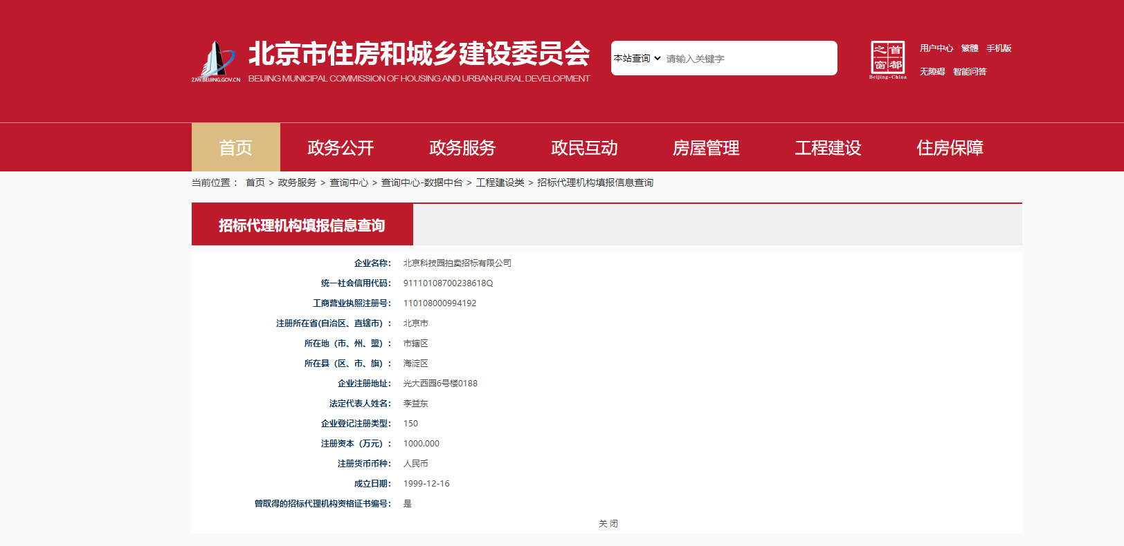 北京市住房和城鄉(xiāng)建設委員會招標代理機構填報信息