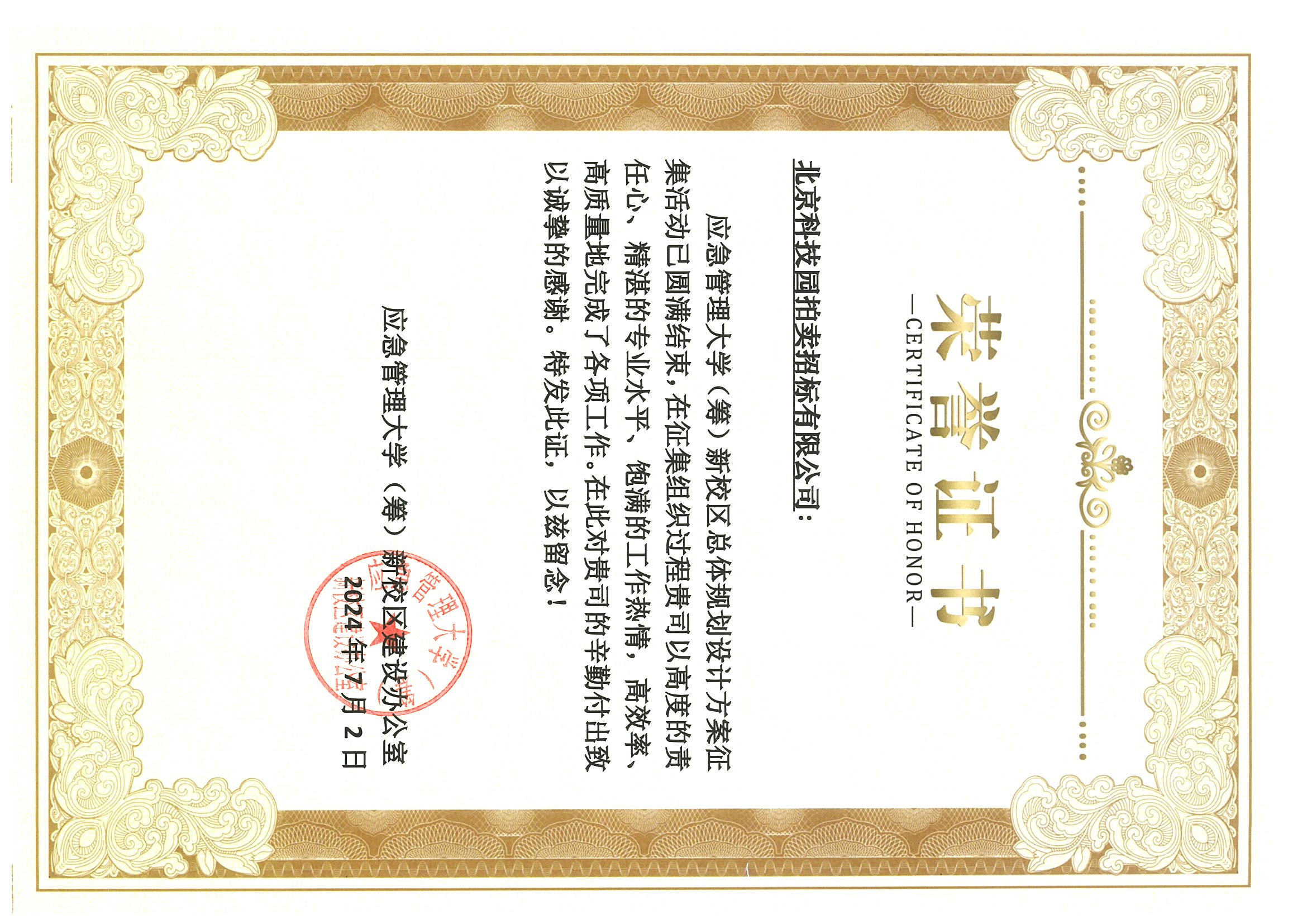 應急管理大學(籌)新校區(qū)總體規(guī)劃設計方案征集榮譽證書