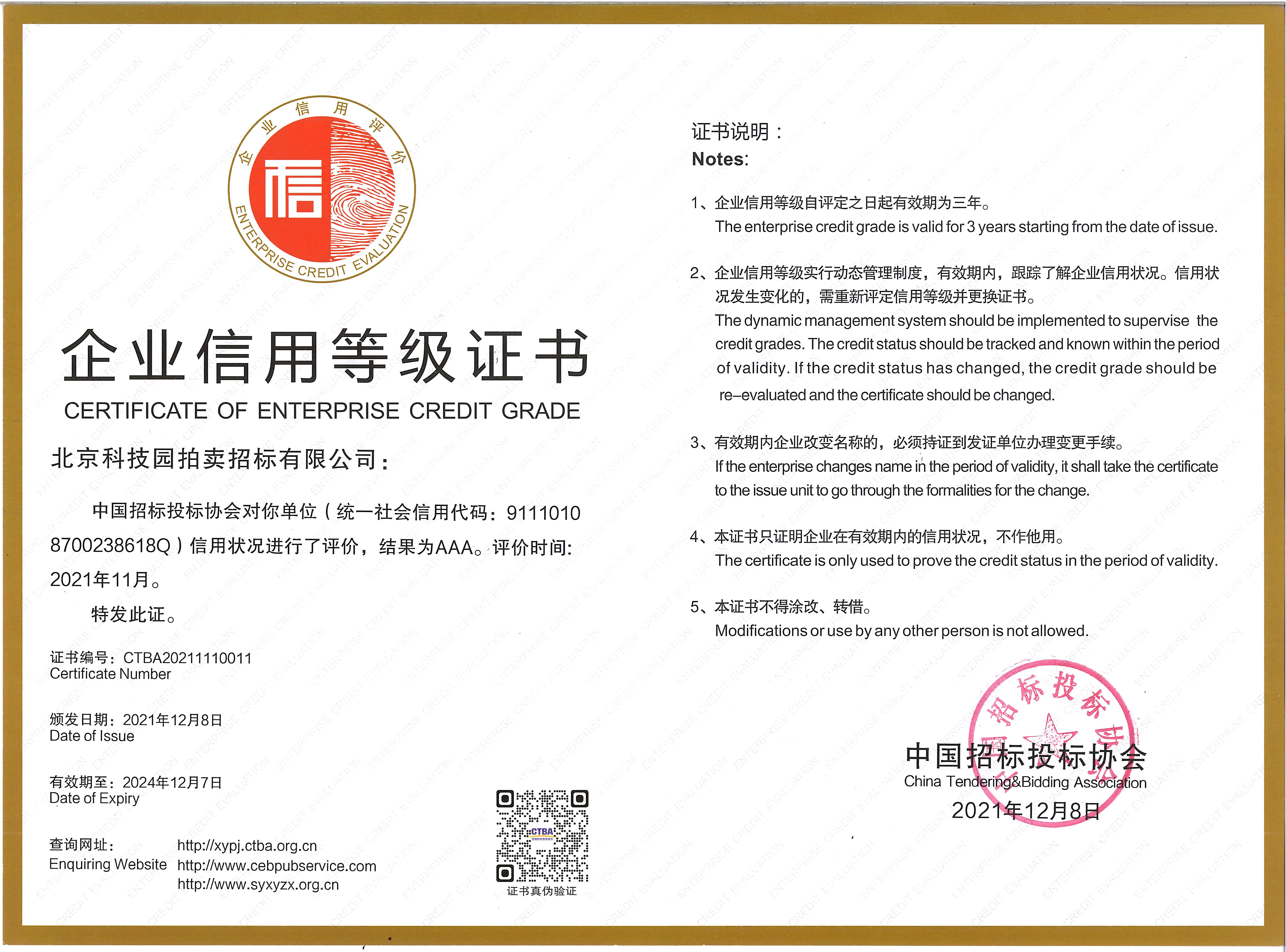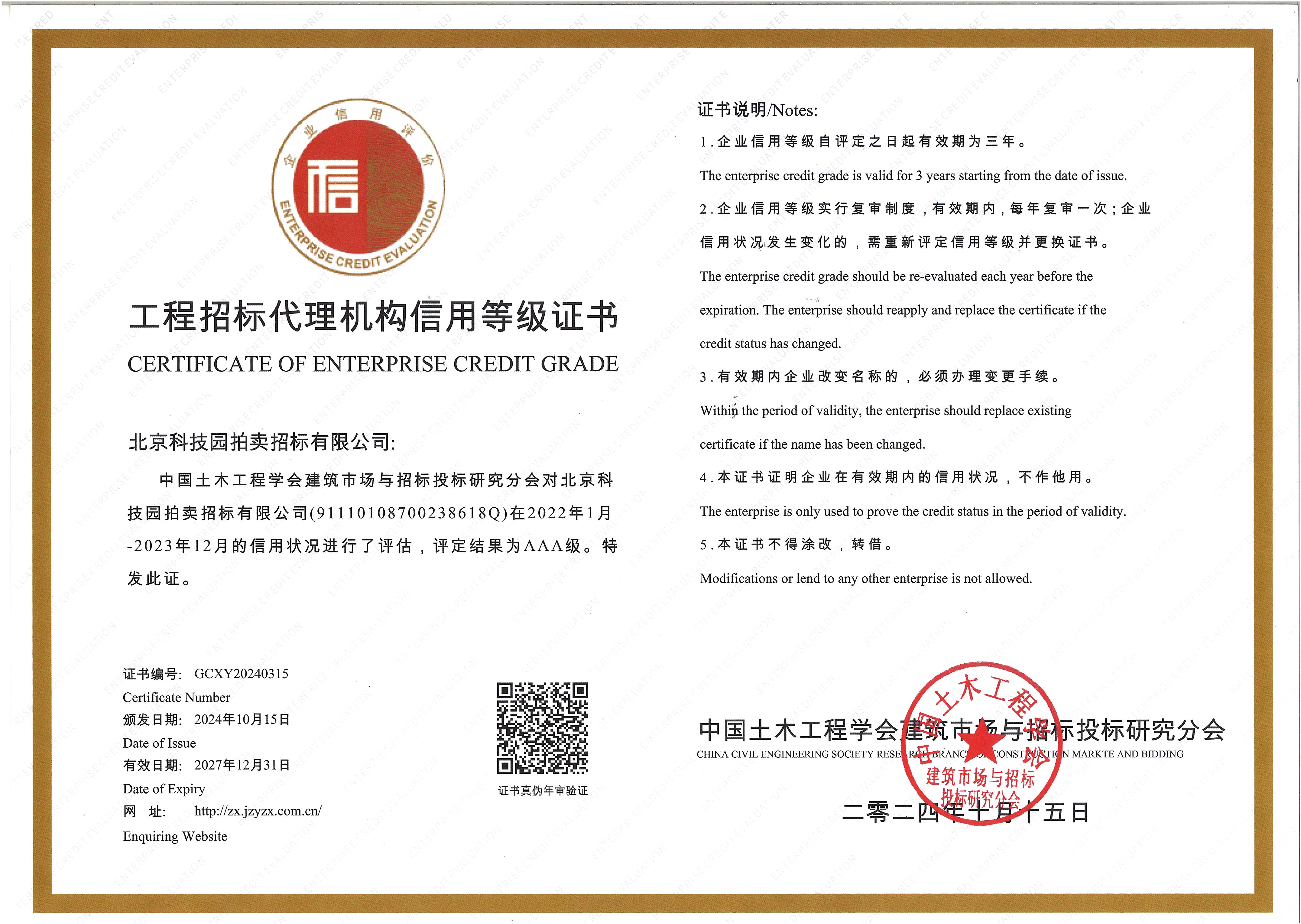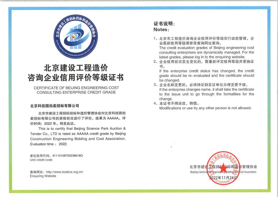 工程造價(jià)咨詢企業(yè)AAA信用證書