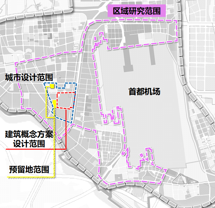 (3)區(qū)域研究:在臨空經濟示范區(qū)轉型升級的大背景下,結合周邊存量土地資源的改造利用,重點在功能布局、公共空間構建、景觀塑造、交通體系等方面提出優(yōu)化意見和意向方案。研究范圍約3182公頃。