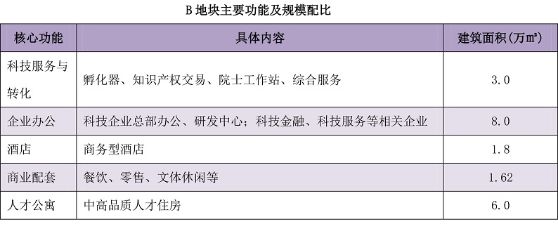 核心功能:科技服務(wù)與轉(zhuǎn)化、企業(yè)辦公、酒店、商業(yè)配套、人才公寓。