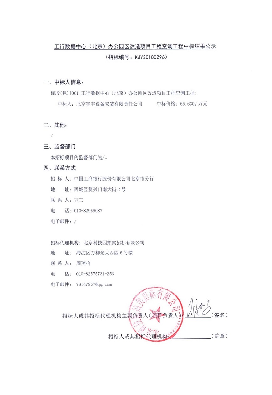 工行數(shù)據(jù)中心(北京)辦公園區(qū)改造項(xiàng)目工程空調(diào)工程中標(biāo)結(jié)果公示