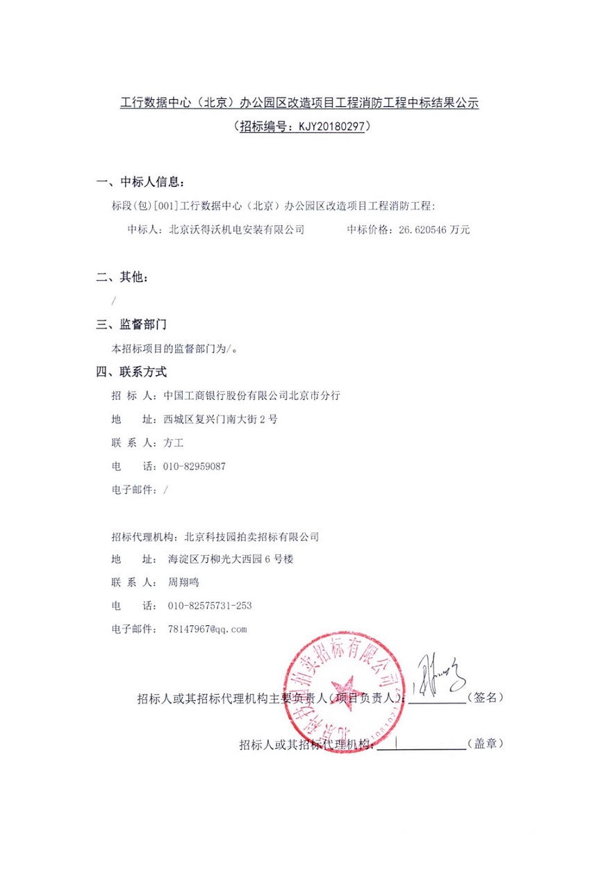 工行數(shù)據(jù)中心(北京)辦公園區(qū)改造項(xiàng)目工程消防工程中標(biāo)結(jié)果公示
