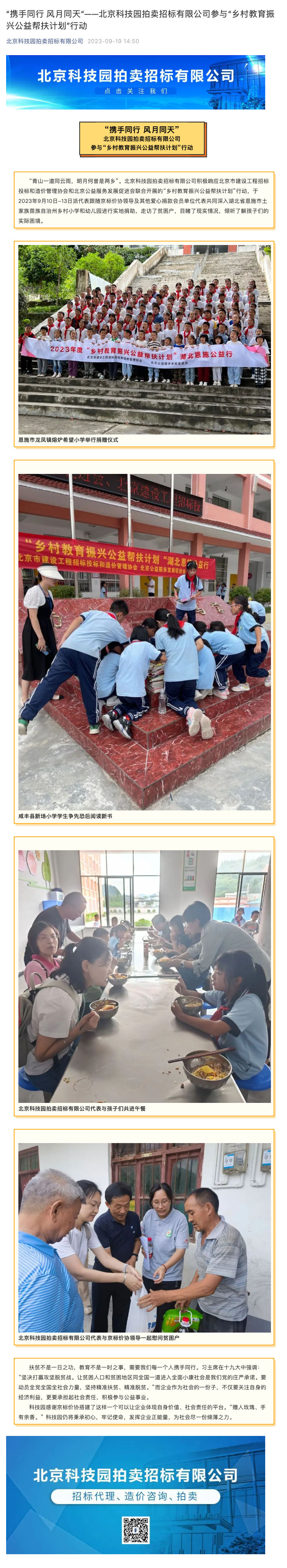 “攜手同行 風(fēng)月同天“——北京科技園拍賣招標(biāo)有限公司參與 “鄉(xiāng)村教育振興公益幫扶計(jì)劃”行動(dòng)